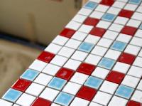 奥様もタイル張りに続き、チャレンジ。