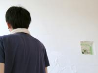 大分市内ではしっくい塗り体験。