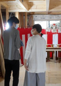 大分市寒田にて上棟式。 |