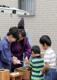 大分市内ではしっくい塗り体験。