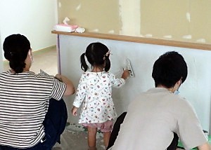 宇佐で漆喰塗り体験。