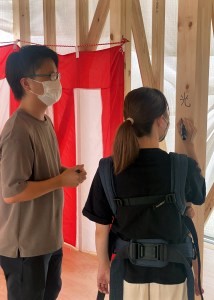 大分市寒田にて上棟式。 |